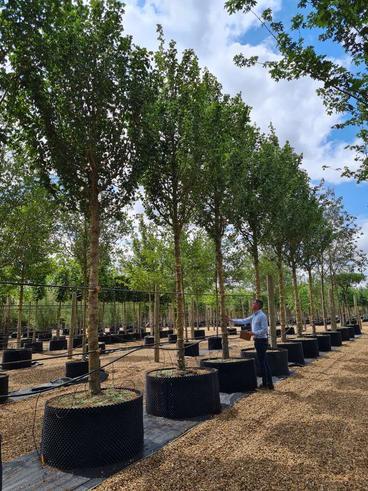 A very upright cultivar of Acer campestre, this clone grows with very tightly ascending branches. Perfect for narrow streets due to its compact crown. Dark green 5 lobed leaves, winged fruits and butter yellow autumn colour give great seasonal interest. Will grow in almost all soils and tolerates hard paving, drought, and air pollution.